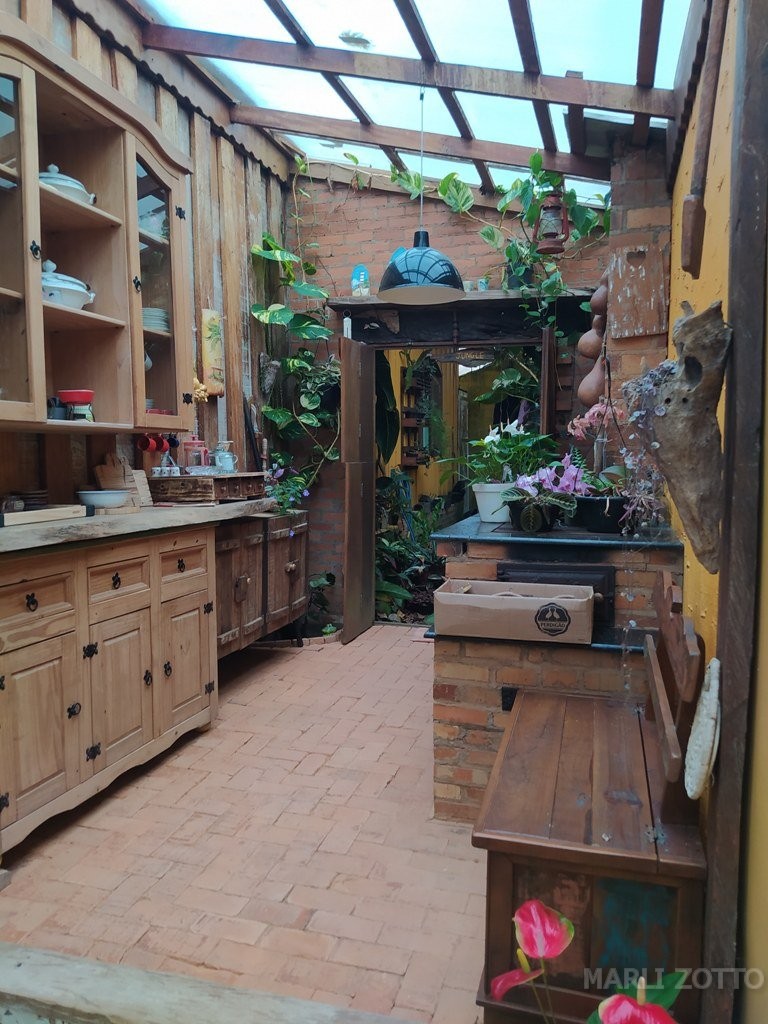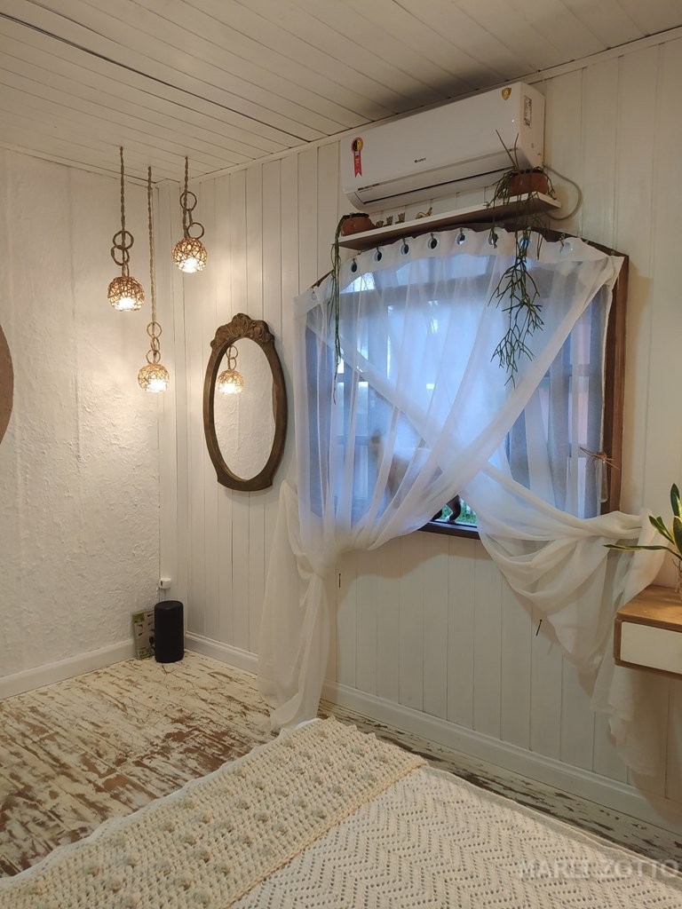 INTERNAMENTE: Copa e cozinha conjugadas com saída para um espaço externo charmoso, com viveiro de plantas. Sala de estar com sofá super confortável, TV, 3 dormitórios com camas de casal e 1 colchão extra (se necessário), banheiro completo. Ar condicionado em um dos dormitórios, ventiladores de teto nos demais. O imóvel está bem mobiliado, a cozinha bem equipada com fogão de lenha, fogão de mesa, forno elétrico, panela e chaleira elétrica, microondas, liquidificador, louças, panelas, talheres e demais utensílios suficientes para atender até 8 pessoas confortavelmente.
