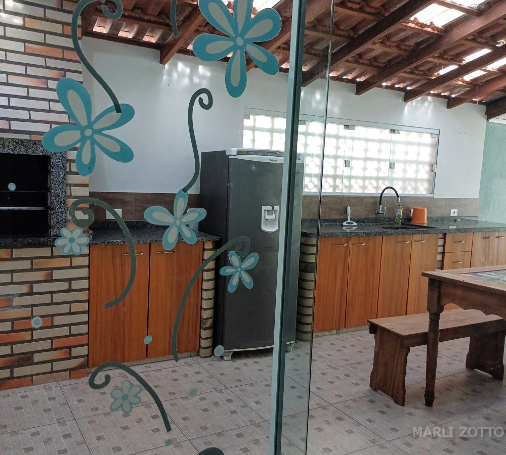 banheiros completos e mais o da suíte, em um dos dormitórios. Cozinha e área de churrasqueira, com armários