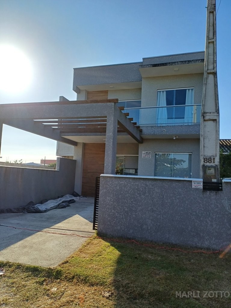 Excelente SOBRADO NOVO, projeto arquitetônico bonito, padrão de construção muito bom. Laje, telhas em barro, aberturas em alumínio e vidros, piso porcelanato. Está localizado na Rua RECANTO DA PAZ, nº 881 – Balneário São José II em Itapema do Norte, Itapoá SC, edificado no Lote 20-2 da quadra 014 , lote esse medindo 202,18 m2 e com área construída de 115,79 m2 . Contém jardim na frente do imóvel e quintal nos fundos, área descoberta para um carro. INTERNAMENTE: Sala de estar com RACK e sofá confortável, copa e cozinha conjugadas, lavabo, acesso por escada para o piso superior. Espaço embaixo da escada, bem aproveitado para depósito e armários. Área de lazer, churrasqueira e pia, área de serviço com tanque e máquina de lavar. PISO SUPERIOR: área de circulação, varandas amplas na frente e nos fundos, vista panorâmica da Serra do Mar e cidade. Banheiro social completo, 3 dormitórios, sendo uma suíte. Todos com acesso às varandas. O imóvel está mobiliado e bem equipado com móveis da cozinha planejados, mesa com cadeiras, eletrodomésticos (geladeira duplex, fogão de mesa e demais utensílios). Nos dormitórios camas de casal. Banheiros com armários e Box em vidro temperado.